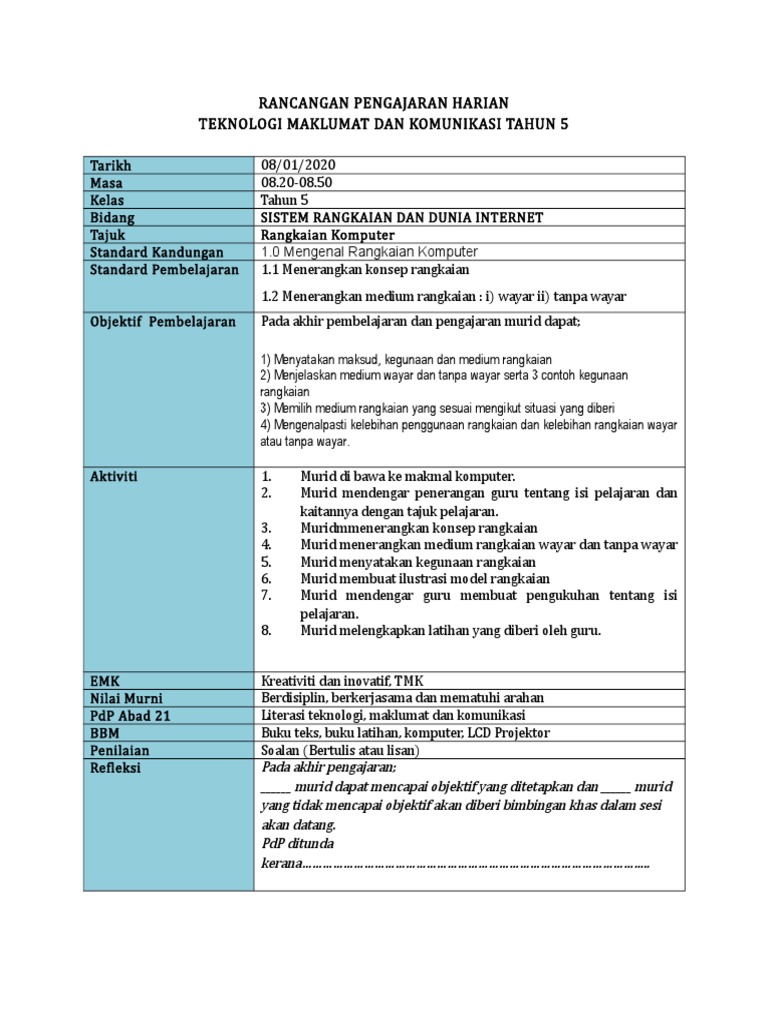 Teknologi Maklumat Komunikasi Tahun 5 Definisi Kegunaan Rangkaian