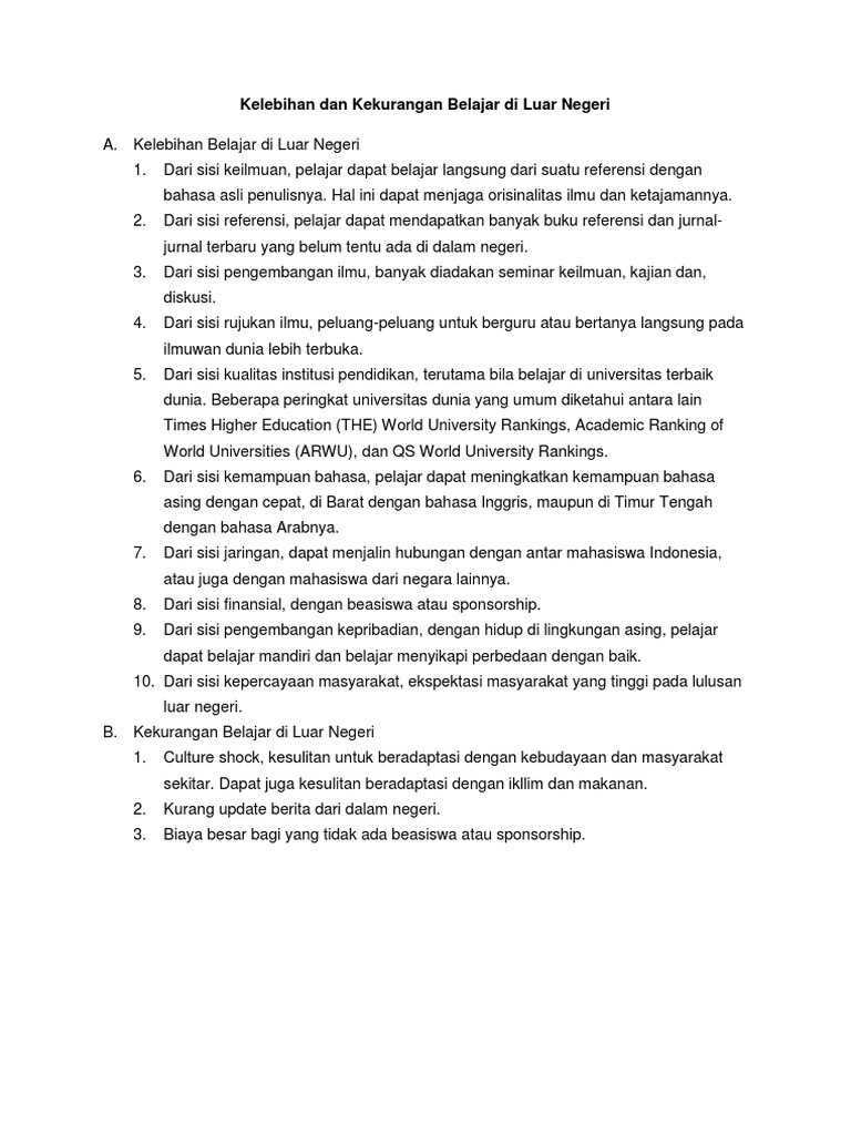 Kelebihan Dan Kekurangan Belajar Di Luar Negeri