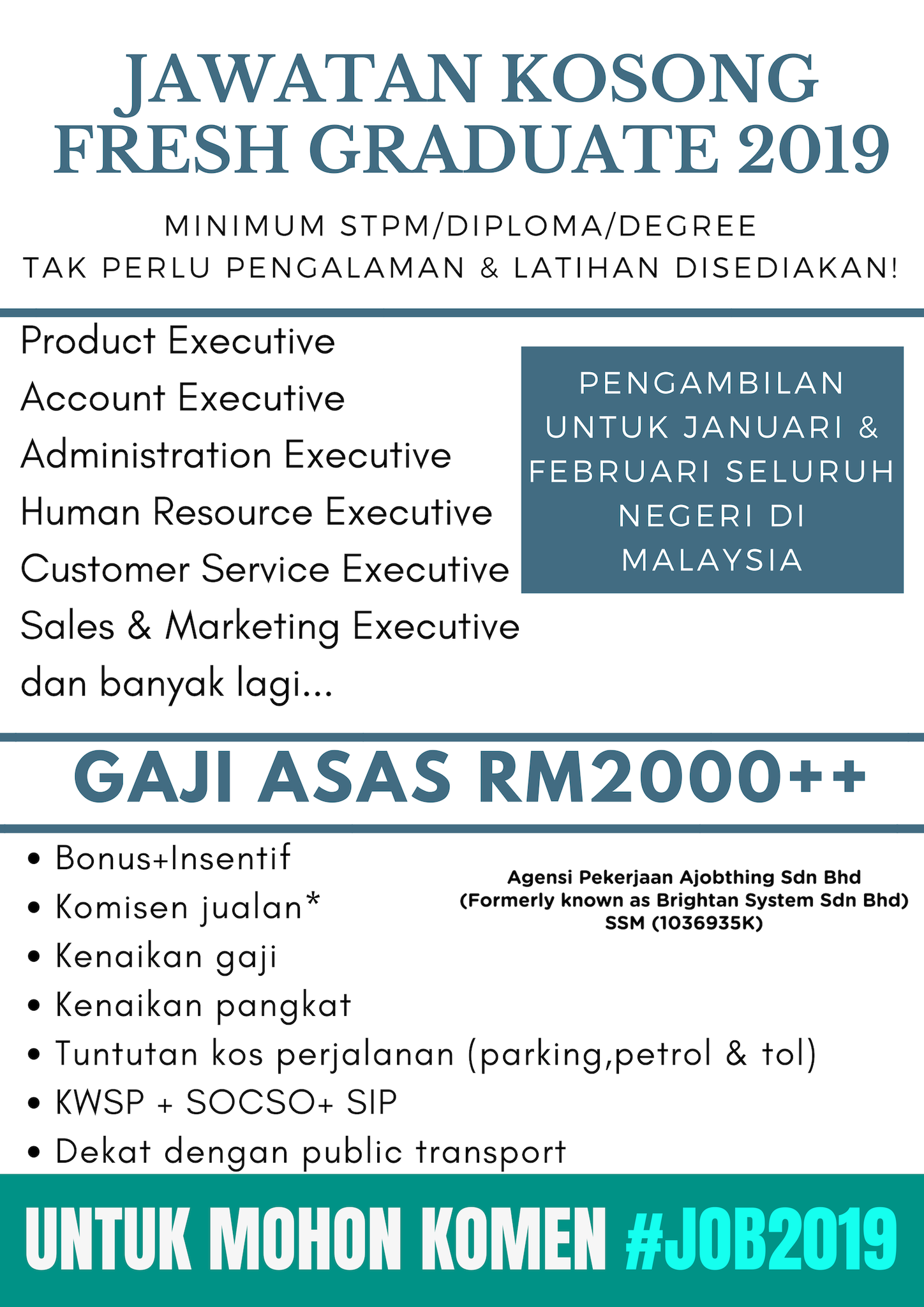 Maukerja On Twitter Jawatan Kosong Fresh Graduate 2019 Gaji Asas Minimum Rm2500 Kelayakan Diploma Degree Master Tidak Wajib Ada Pengalaman Link Kerja Https T Co Qqpwmmbzu8 Rt Tekan Link Untuk Mohon Https T Co R4eo1tkky0