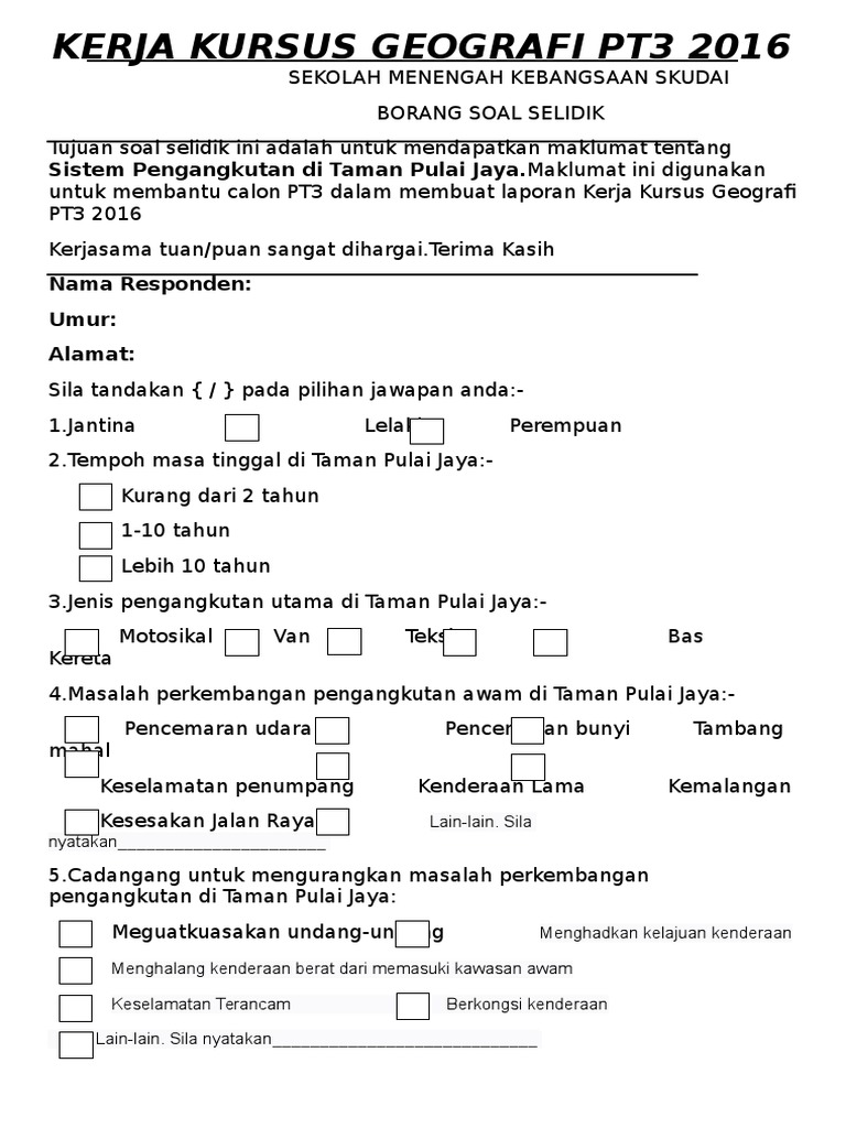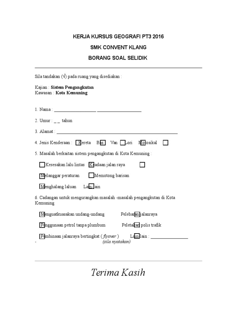 Pengangkutan Awam Borang Soal Selidik Geografi Tingkatan 3 Guru Paud