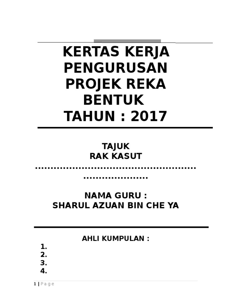 Kertas Kerja Pengurusan Projek Reka Bentuk Tingkatan 1