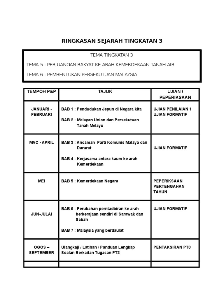 Ringkasan Sejarah Tingkatan 3
