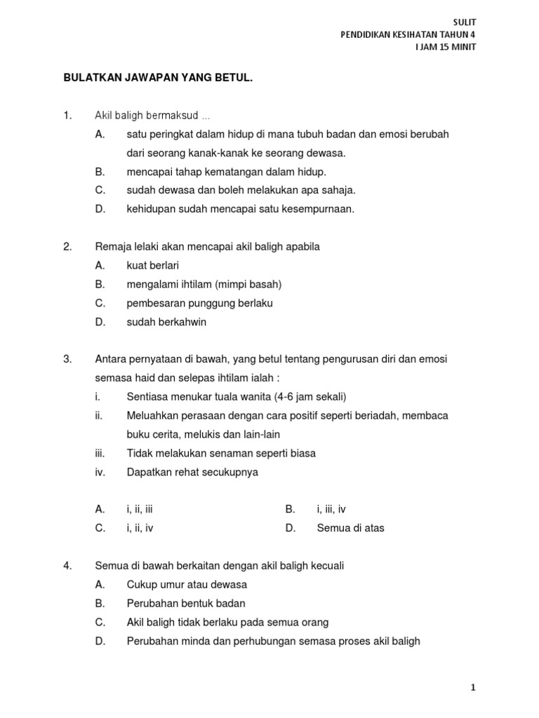 Soalan Latihan Pendidikan Kesihatan Tahun 4