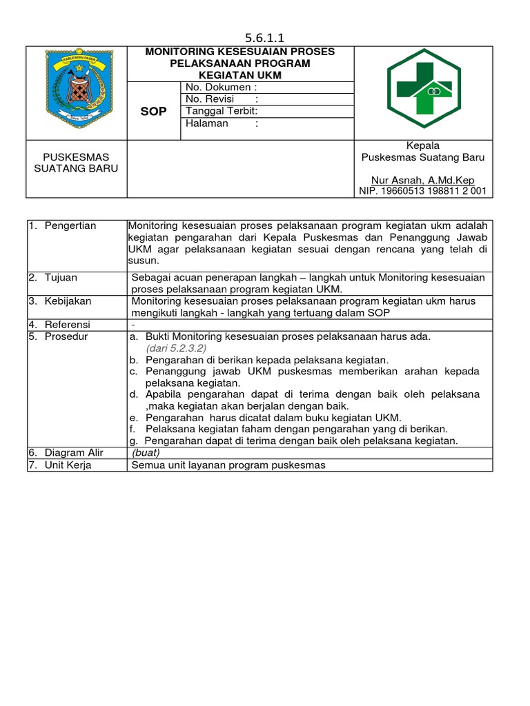 5 6 1 1 Sop Monitoring Kesesuaian Proses Program Kegiatan Ukm