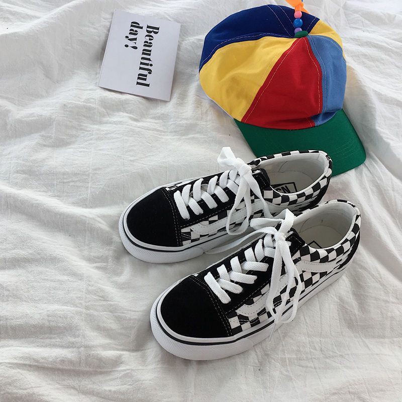 Kasut Sukan Model Musim Bunga Dan Musim Gugur Sivans Kasut Kanvas Lelaki Kasual Rendah Kasual Kasut Liar Pasangan Kasut Klasik Hitam Dan Putih Kotak Kotak Shopee Malaysia