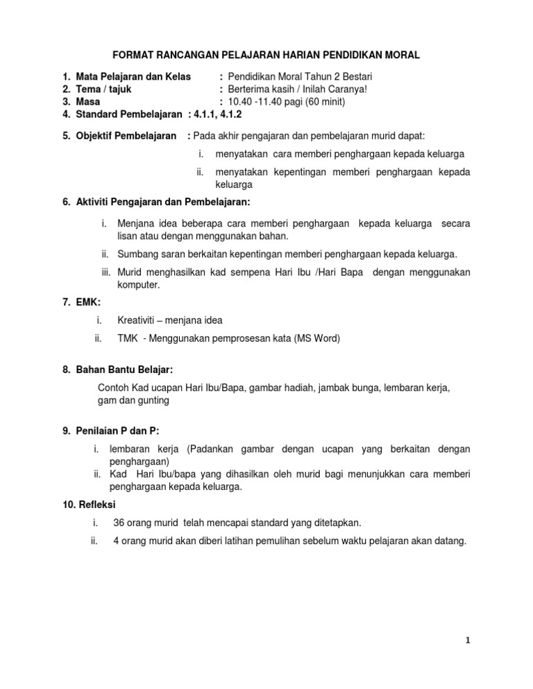 Rph Pendidikan Moral Tahun 2