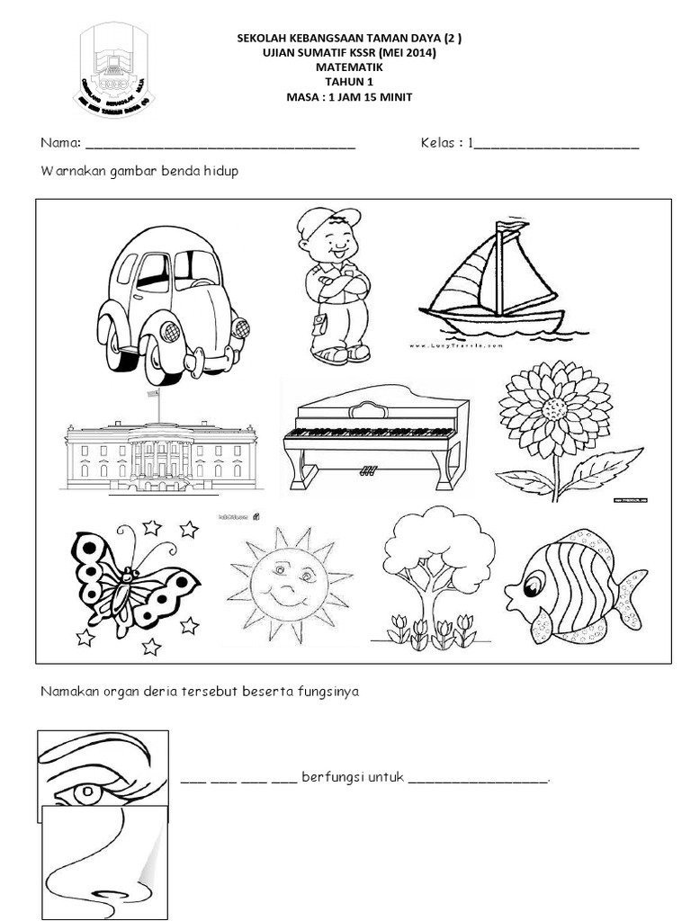 Sains Tahun 1 Pksr 1 Kertas 1 2017 Sains Tahun 1 Math Worksheets Words