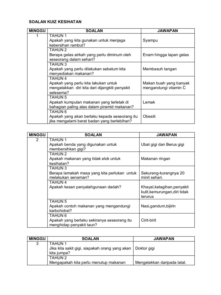 Soalan Kuiz Kesihatan