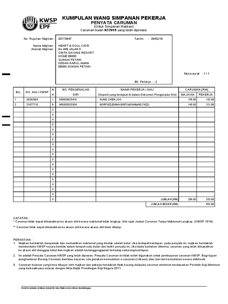 Kumpulan Wang Simpanan Pekerja Penyata Caruman