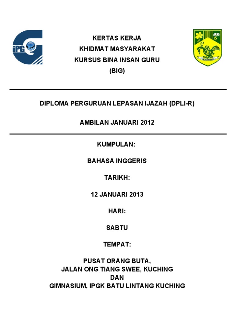 Pengambilan Kursus Perguruan Lepasan Ijazah Sekolah Rendah Kpli Sr J Qaf Ambilan Jan 2012