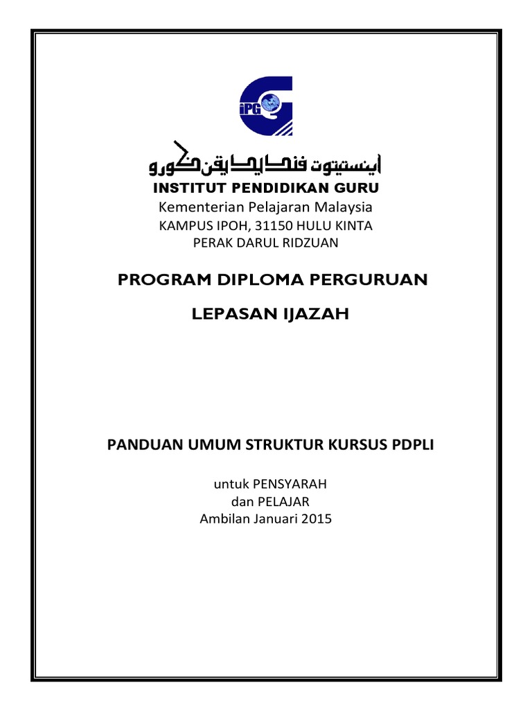 Program Diploma Perguruan Lepasan Ijazah Panduan Umum Struktur Kursus Pdpli Pdf Download Gratis