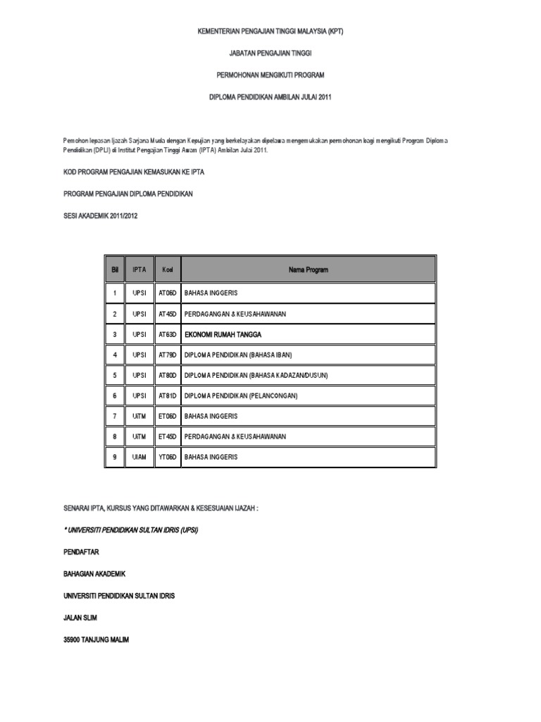 Permohonan Kemasukan Ke Upsi Ambilan Februari 2011 2012 All The Best