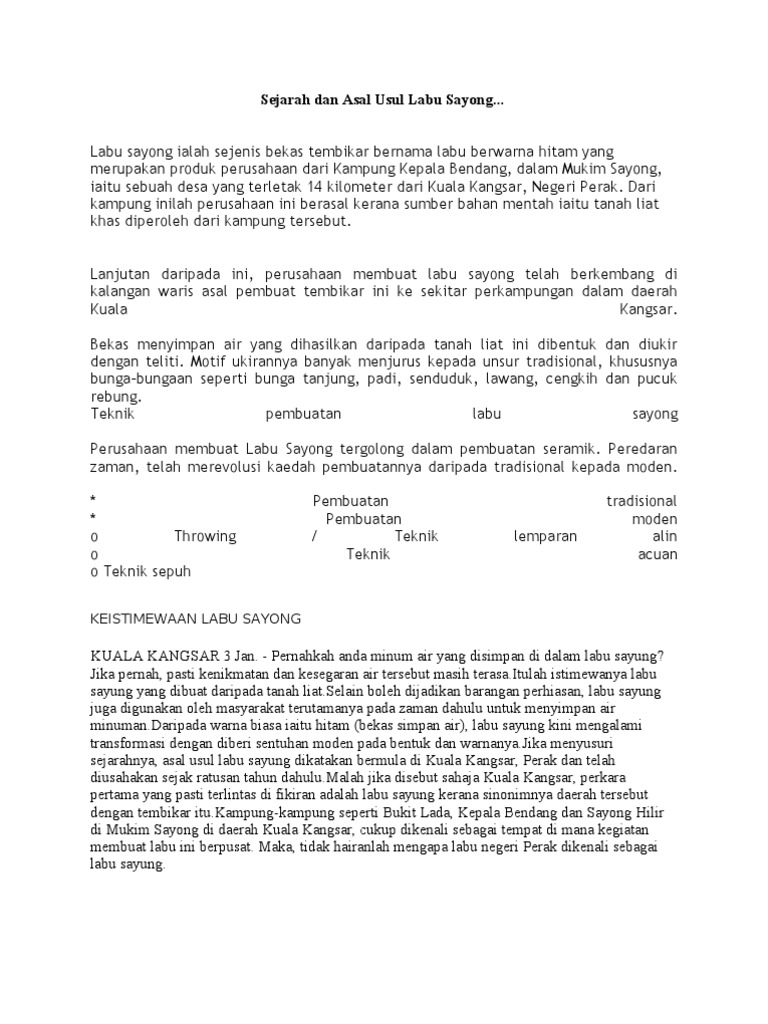 Sejarah Labu Sayong Kuala Kangsar