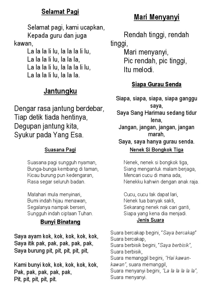 Contoh Lagu Tahun 1 Pdf Audio Youtube
