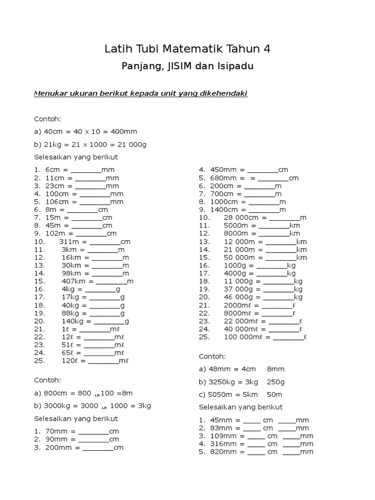 Soalan Latih Tubi Matematik Tahun 2 Gurubesar My