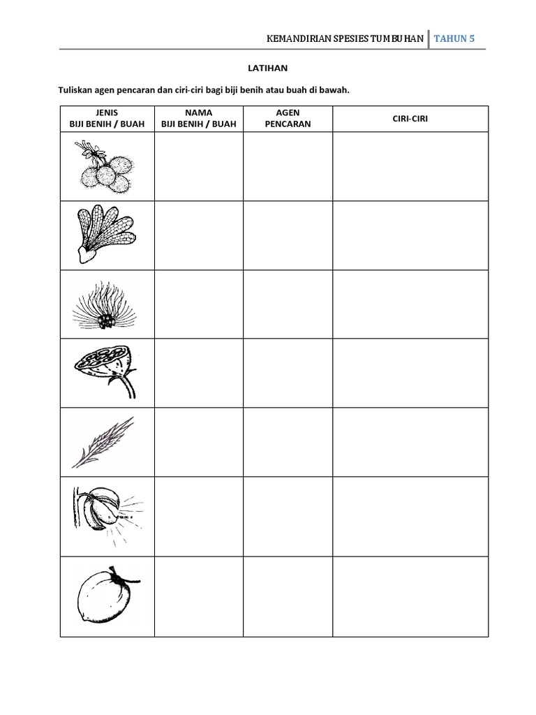Sains Tahun 1 Tumbuh Tumbuhan Worksheet