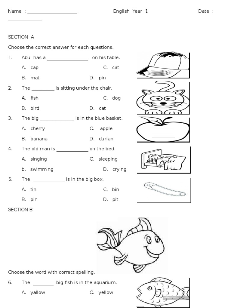 Contoh Mid Year Exam Tahun 2 Bahasa Inggeris 1st Grade Worksheets Words Exam