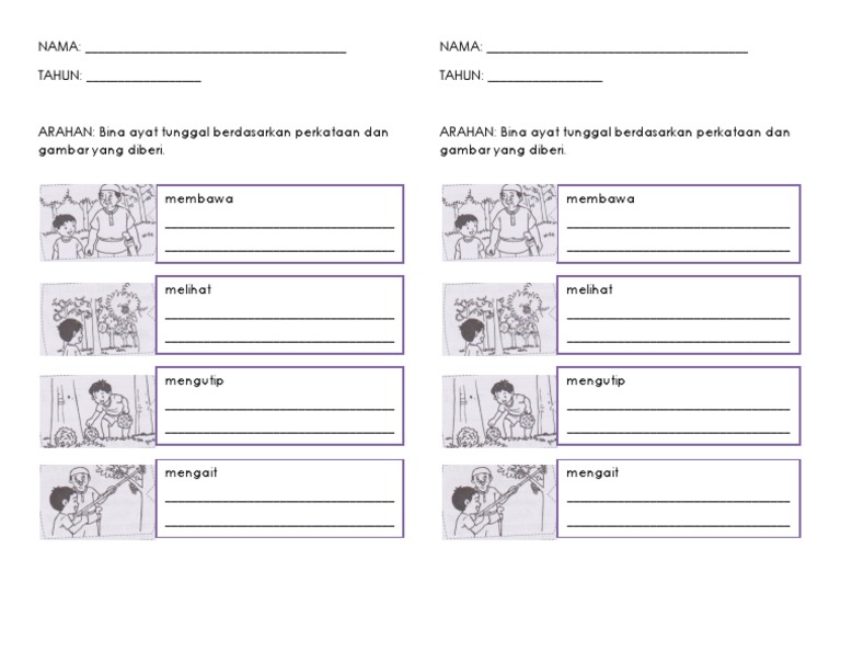 Contoh Ayat Tunggal Tahun 1 Surat Dd