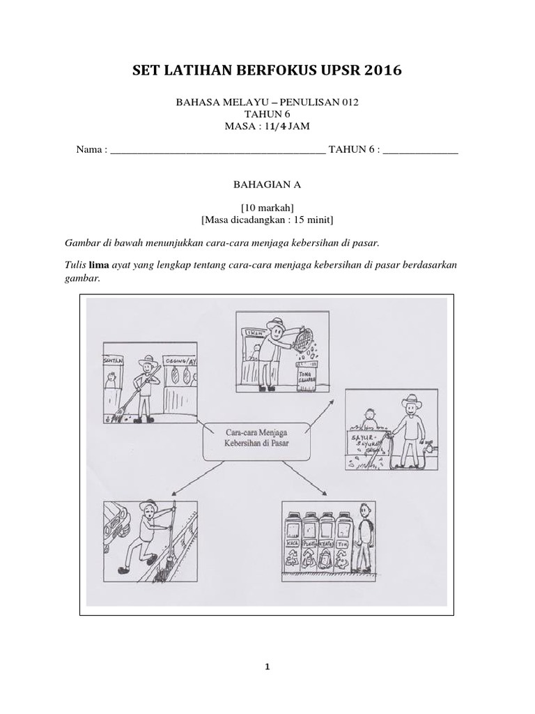 Contoh Soalan Upsr Bahasa Melayu Penulisan Kunci Ujian
