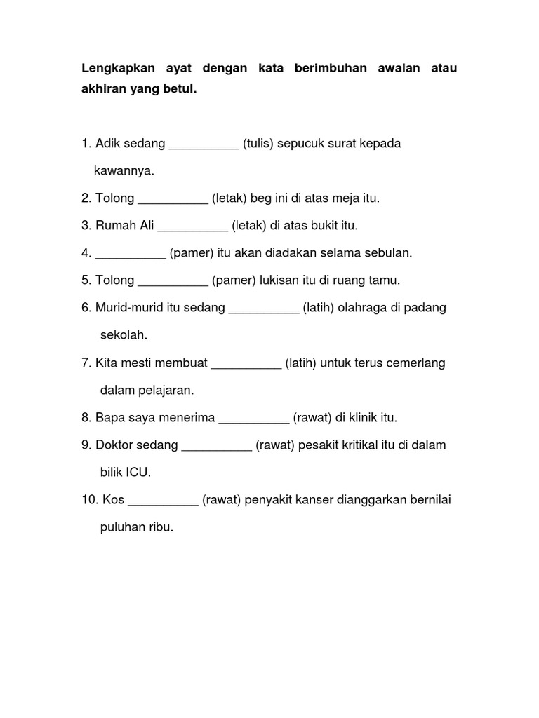 Latihan Imbuhan Akhiran Dan Awalan Docx Document