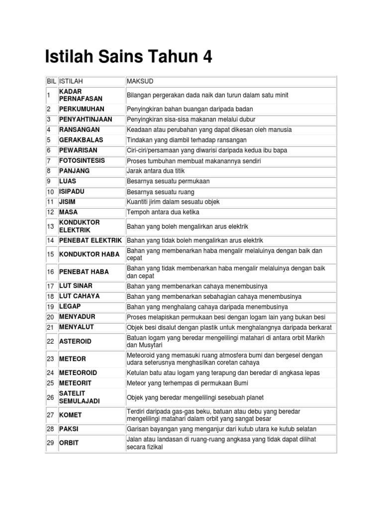 Istilah Sains Tahun 4 Kssr