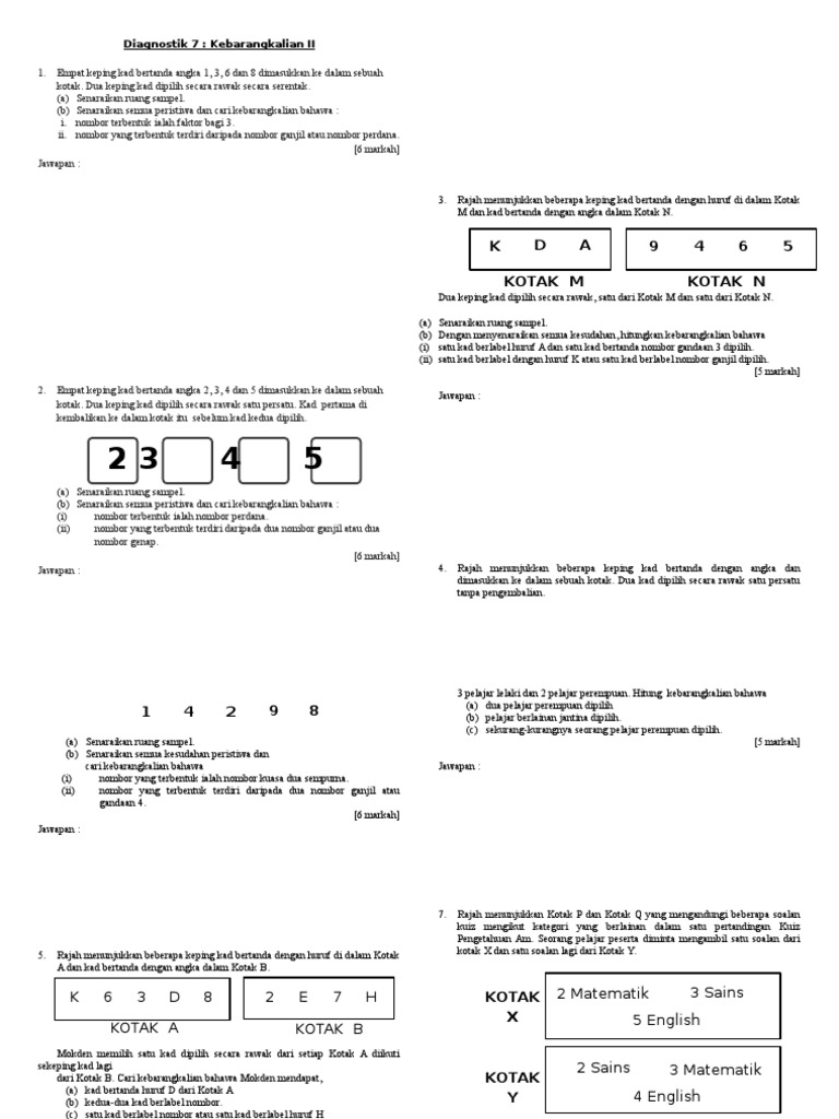 Soalan Matematik Tingkatan 4 Kebarangkalian Kuora A