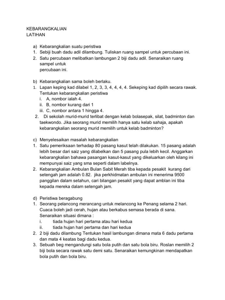 Latihan Kebarangkalian