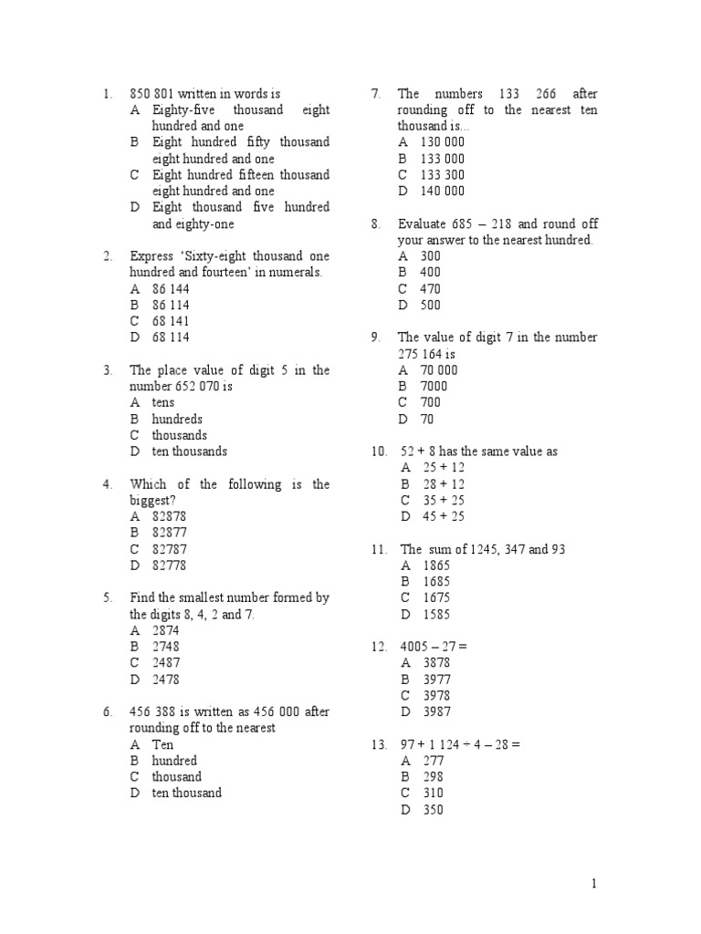 Soalan Matematik Tahun 4 Pdf