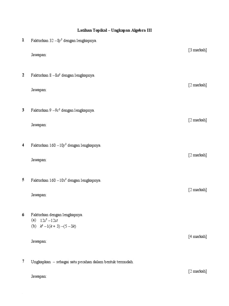 Kuiz Matematik Tingkatan 3 Ungkapanalgebra