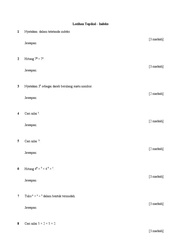 Soalan Latihan Indeks Tingkatan 3 Kuora A Cute766