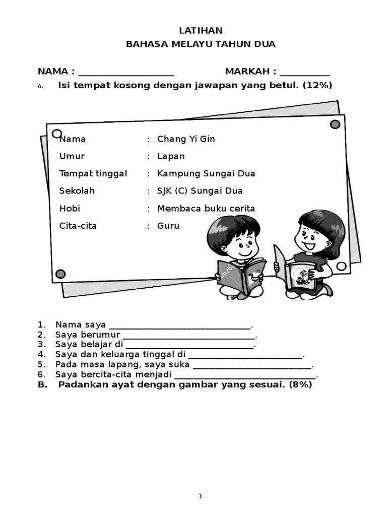 Lembaran Kerja Bahasa Melayu Tahun 2 Malay Language Math Activities Preschool Grammar And Vocabulary