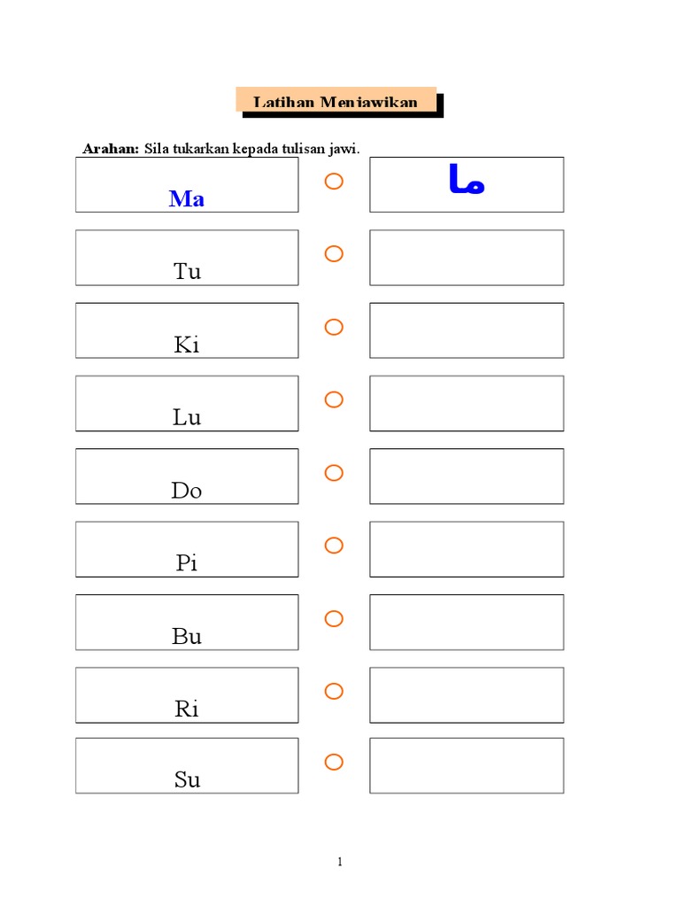 Latihan Menulis Huruf Jawi Tunggal Pendidik2u