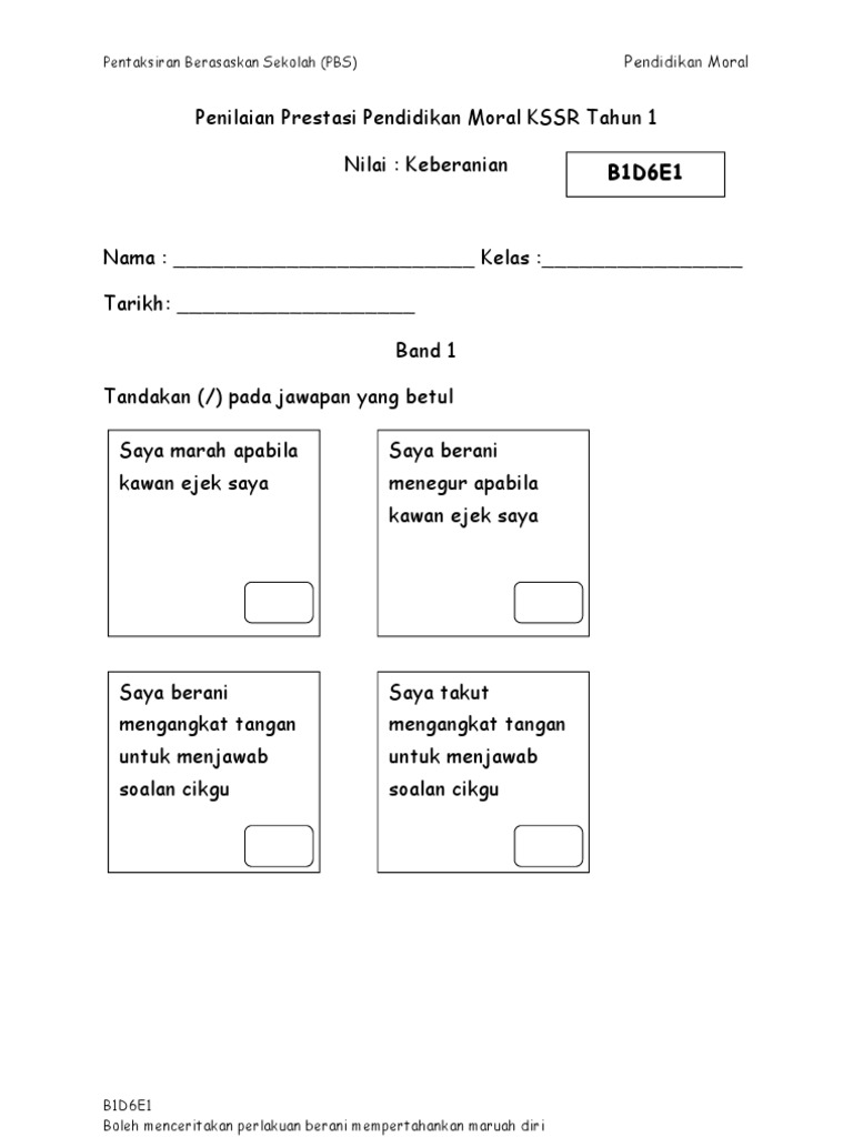 Evidens Pbs Pendidikan Moral Tahun 1 Nilai Keberanian Band 1 6