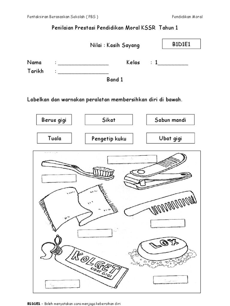 Evidens Pbs Pendidikan Moral Tahun 1 Nilai Kerajinan Band 1 6