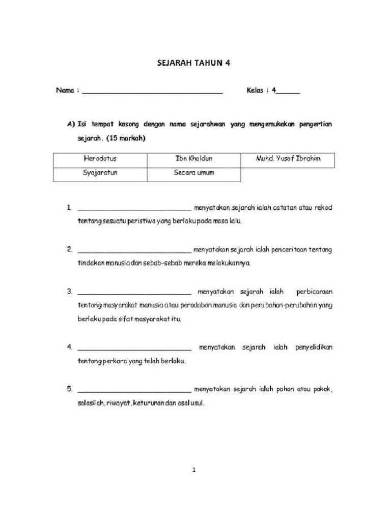 Kertas Soalan Sejarah Darjah 4 Gong Shim L