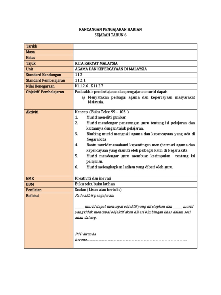 Latihan Sejarah Tahun 6 Agama Dan Kepercayaan