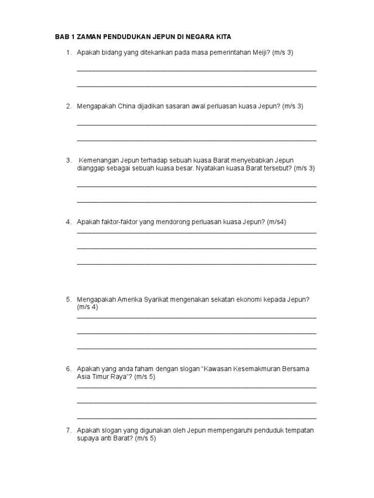 Soalan Sejarah Tingkatan 3 Bab 7