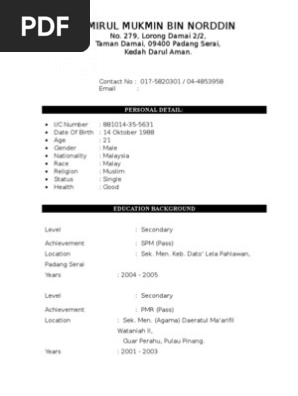 Contoh Resume Lepasan Spm Ringkas Simple Terbaik