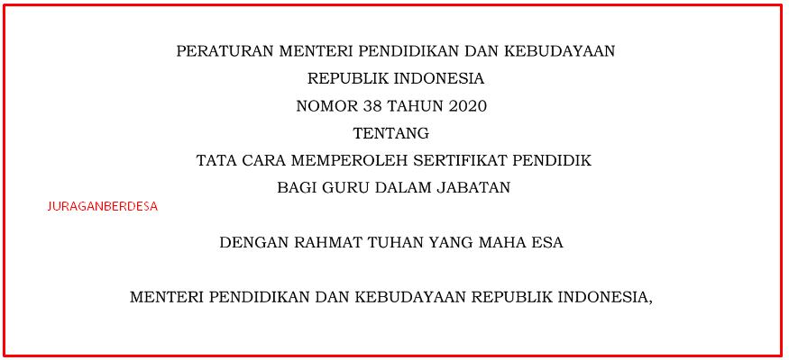 Download Permendikbud Nomor 38 Tahun 2020 Tentang Tata Cara Memperoleh Sertifikat Pendidik Bagi Guru Dalam Jabatan Juragan Desa