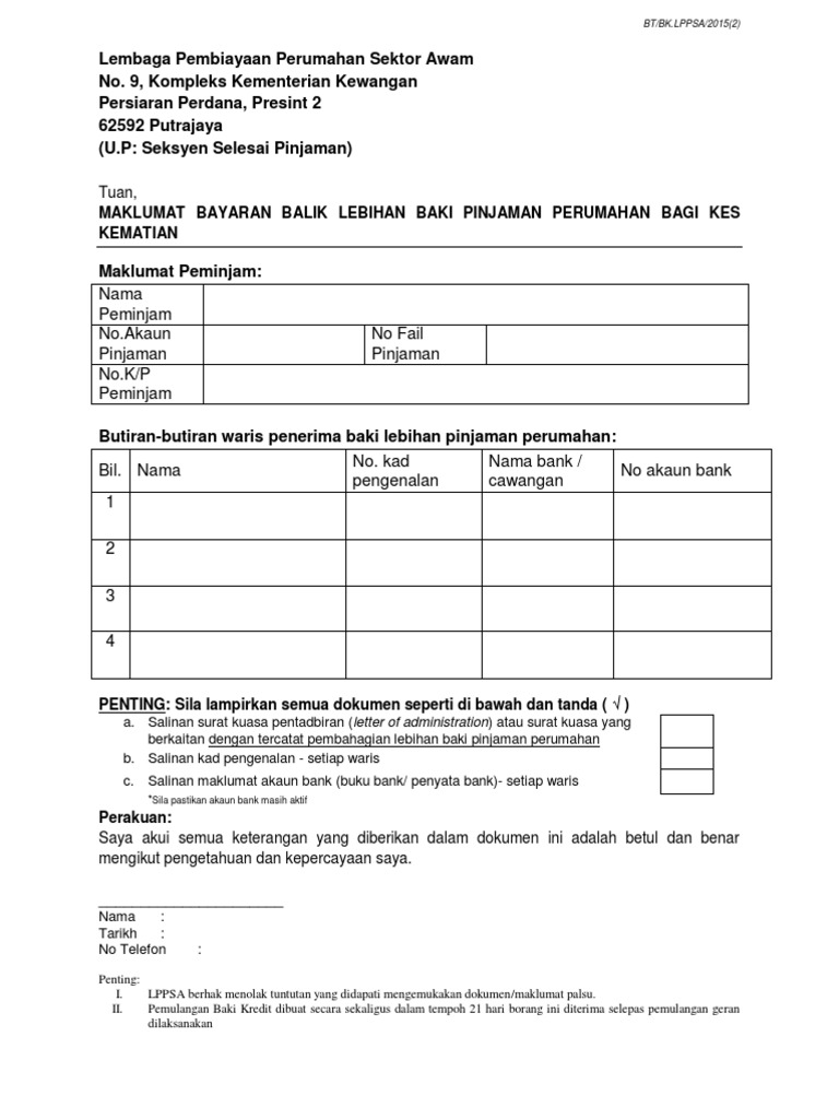 7 Borang Tuntutan Lebihan Potongan Peminjam