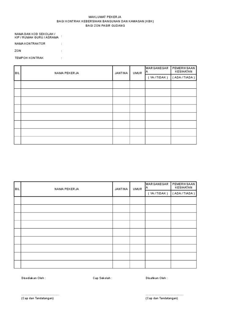 Maklumat Peribadi Contoh Borang Maklumat Pekerja Swasta