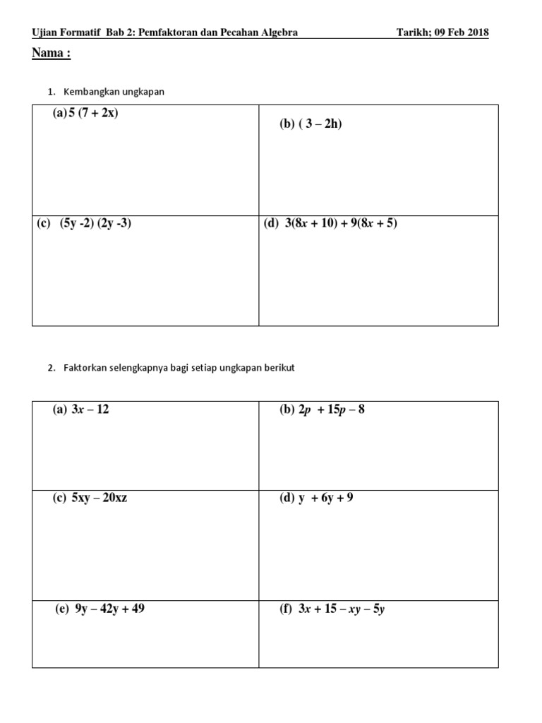 Soalan Matematik Tingkatan 2 Bab Pemfaktoran Dan Pecahan Algebra Viral Blog U