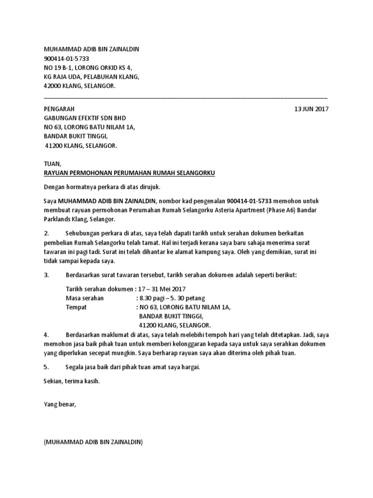Contoh Surat Rasmi Rayuan Rumah Dbkl Surasmi 1 Cute766