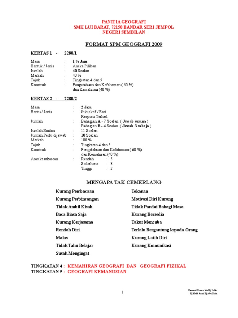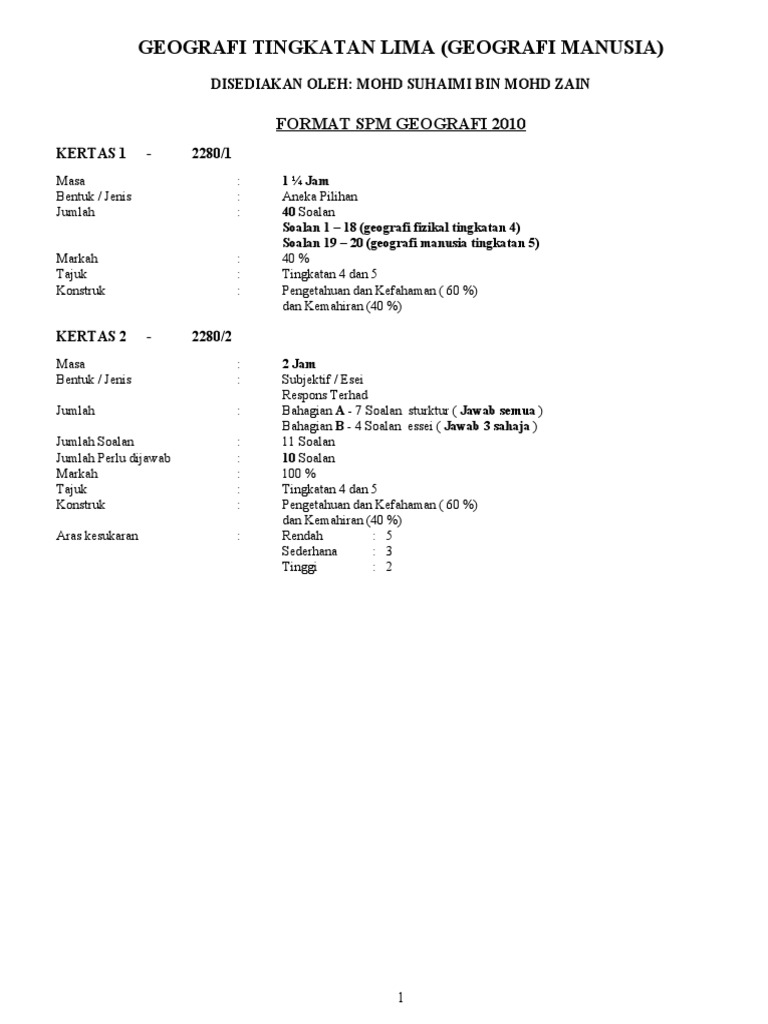 Nota geografi tingkatan 4 nota berpandukan buku teks. Nota nota ini telah direka bentuk untuk memantapkan pengetahuan asas b inggeris kepada murid serta menyediakan mereka supaya celik geografi inovatif dan berupaya mengaplikasikan pengetahuan geografi membuat keputusan dan menyelesaikan masalah dalam kehidupan. Berdasarkan kurikulum standard sekolah menengah kssm yang baharu diimplementasi bermula tahun 2020 mata pelajaran geografi adalah mata pelajaran elektif bagi pelajar yang mengambil pakej kemanusiaan dan sastera ikhtisas. Calon spm wajib menduduki semua kertas peperiksaan bagi mata pelajaran yang didaftar.