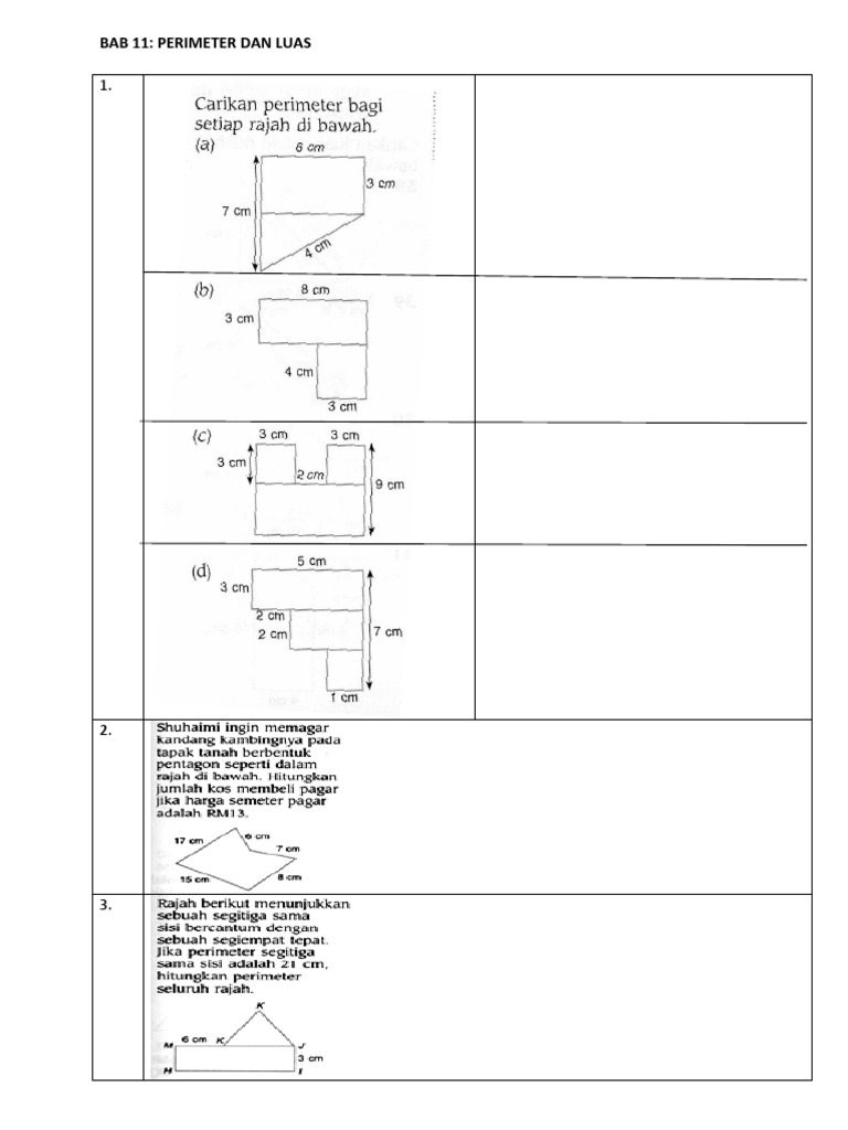 Bab 11 Perimeter Dan Luas Tingkatan 1 Pdf Document