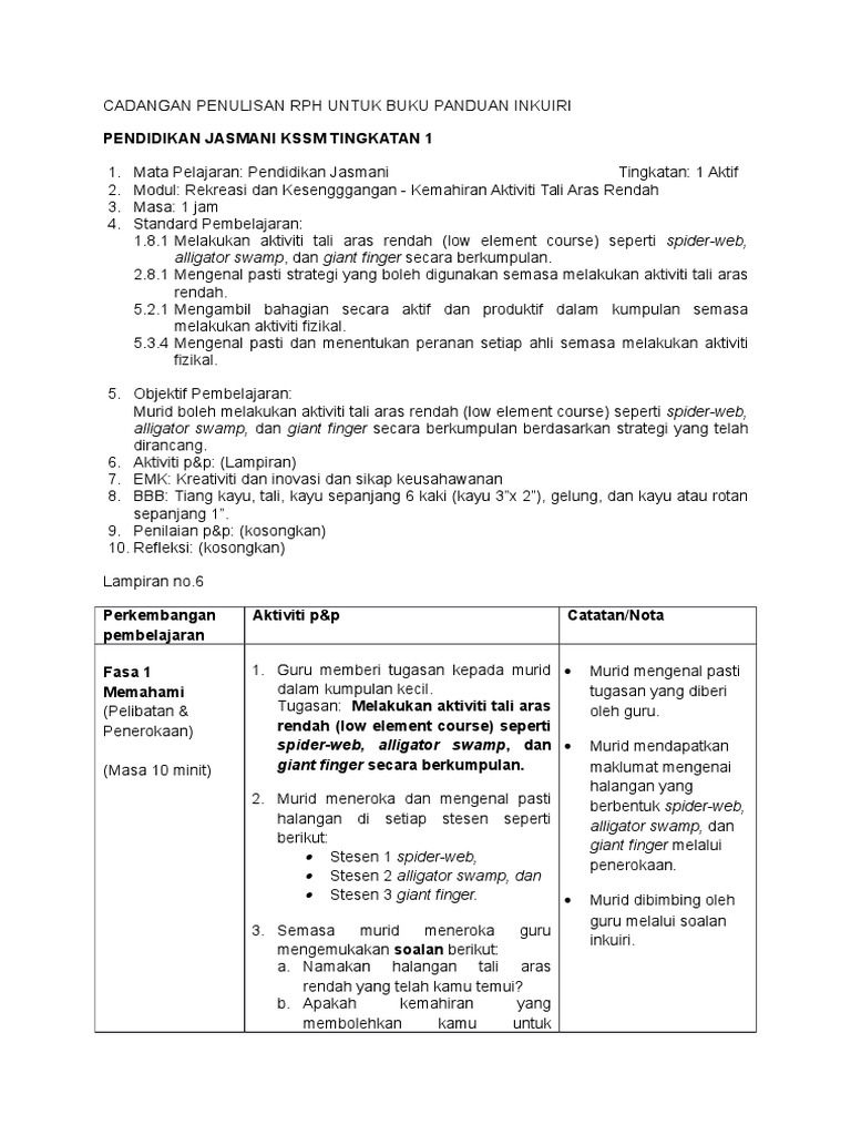 17 Contoh Rph Inkuiri Kssm Pjpk Komponen Pj Tingkatan 1 Docx