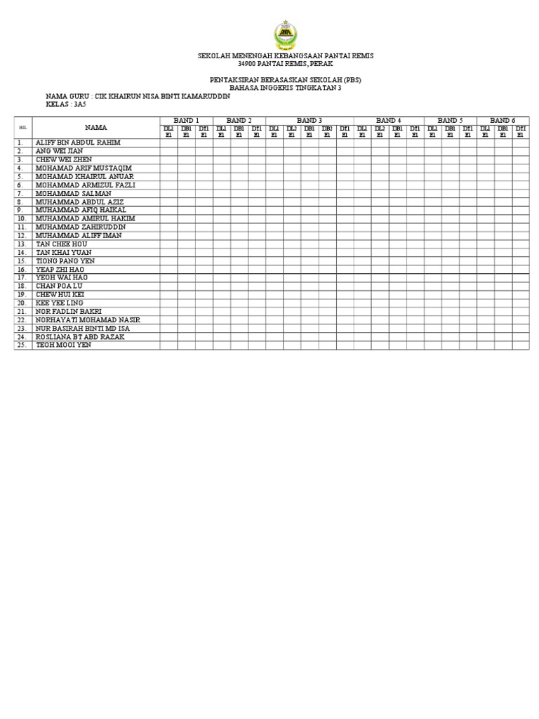 Koleksi Terkini Templat Pelaporan Pbd Tingkatan 3 Pentaksiran Bilik Darjah Bumi Gemilang