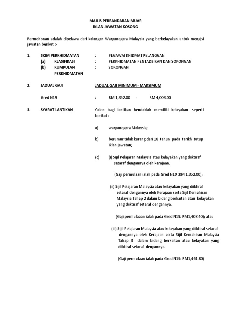 Iklan Pegawai Khidmat Pelanggan Gred N19 Ssm Plus