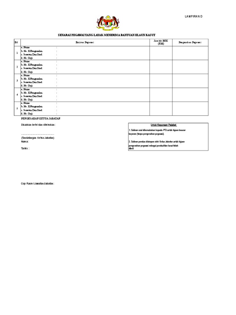 Borang Kasut Xls