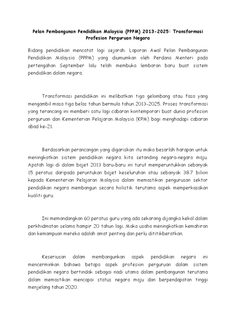 Gpp1013 Pengantar Pengajian Professional Pelan Pembangunan Pendidikan Malaysia 2013 2025